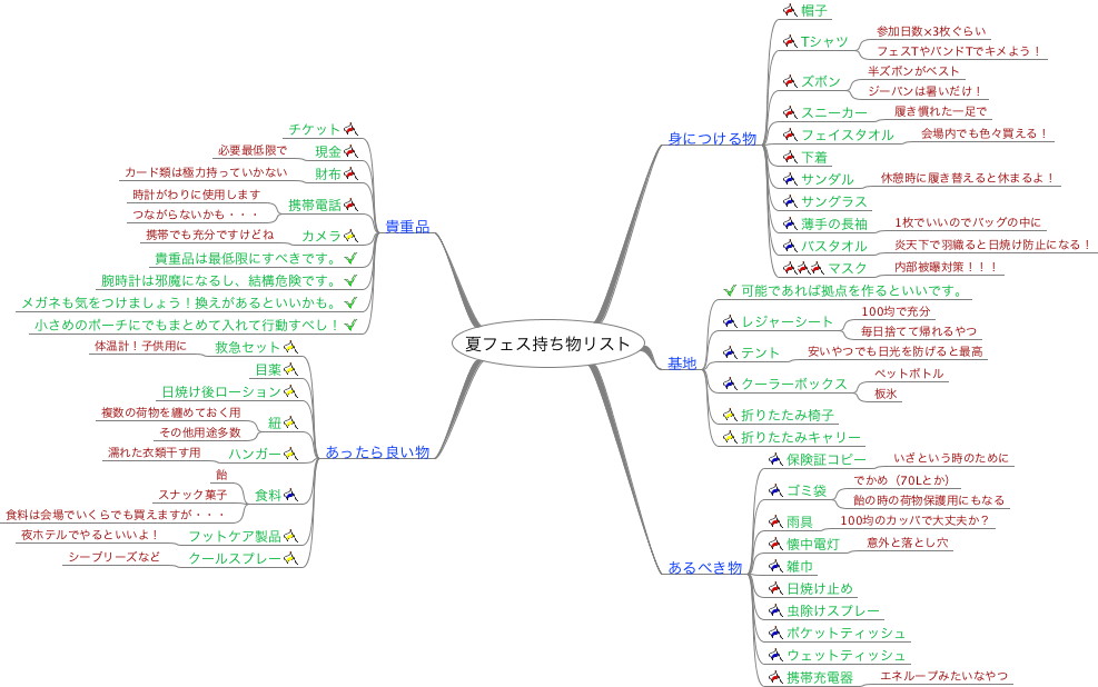 RIJFは、環境が良くて初心者にも敷居が低めのフェスだと思います。ですが、やはり炎天下の中で行われることにはかわりなく、それなりの準備が必要です。私も2004年は適当な準備で参加してえらい後悔したもんです。特に日焼けに対するケアは事前事後必須です。備忘録的な意味合いも込めて、持ち物リストでも作成しましたので、おそらく今週末に買出しをするであろう皆さまの参考にでもなればと思います。